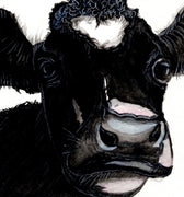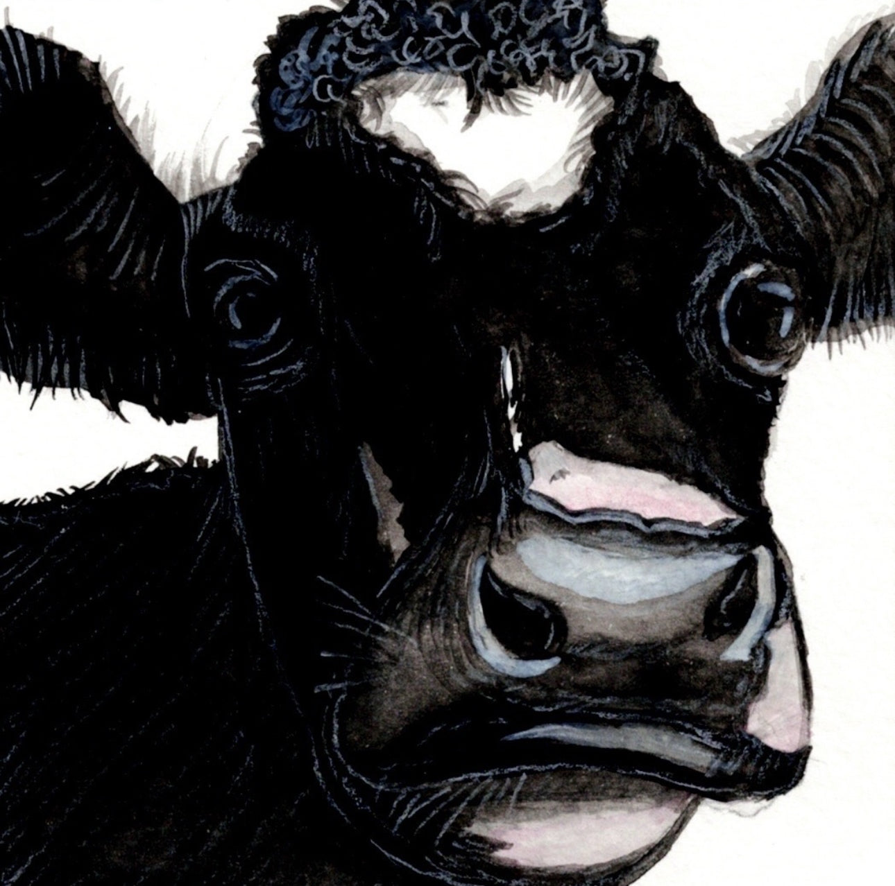 This lively artwork captures the gentle charm of the Holstein Cow, painted in watercolour and ink, with its soft eyes, dark tones and curly quiff set against a plain background, this print brings the beloved breed to life in a fresh and contemporary way. Perfect for animal lovers, countryside enthusiasts, or anyone looking to add a cheerful touch to their home.
